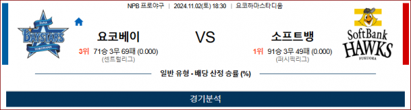 11월 2일 NPB 요코하마 소프트뱅크 한일야구분석 스포츠분석