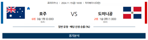 11월 15일 프리미어12 호주 도미니카공화국 해외야구분석 스포츠분석