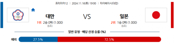 11월 16일 프리미어12 대만 일본 해외야구분석 스포츠분석