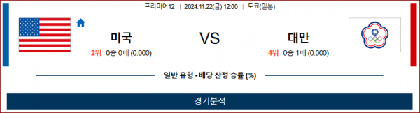 11월 22일 프리미어12 미국 대만 해외야구분석 스포츠분석
