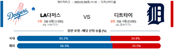 3월 29일 MLB LA다저스 vs 디트타이