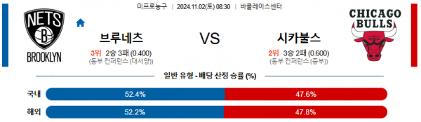 2024 11월 02일 브루클린 시카고 불스 【 NBA 】분석