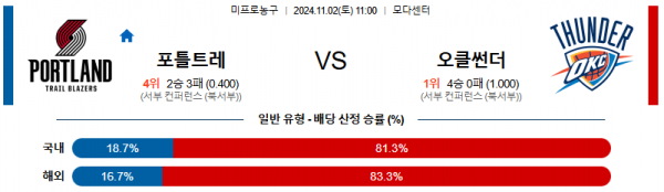 2024 11월 02일 포틀랜드 오클라호마시티 【 NBA 】분석