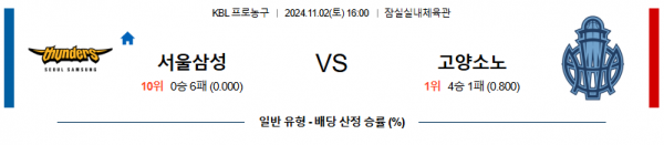 2024 11월 02일 서울삼성 고양소노 【 KBL 】분석