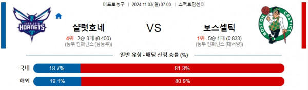 2024 11월 03일 샬럿 보스턴 NBA 분석