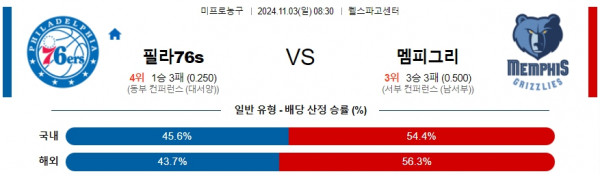 2024 11월 03일 필라델피아 76s 멤피스 NBA 분석