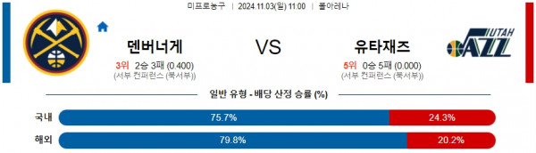 2024 11월 03일 덴버 유타 재즈 NBA 분석
