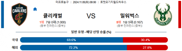 2024 11월 05일 클리블랜드 밀워키 벅스 NBA 분석