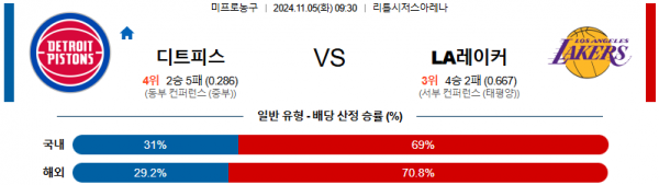 2024 11월 05일 디트로이트 LA레이커스 NBA 분석