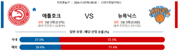 2024 11월 07일 애틀랜타 호크스 뉴욕 닉스 NBA 분석
