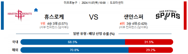 2024 11월 07일 휴스턴 로키츠 샌안토니오 NBA 분석