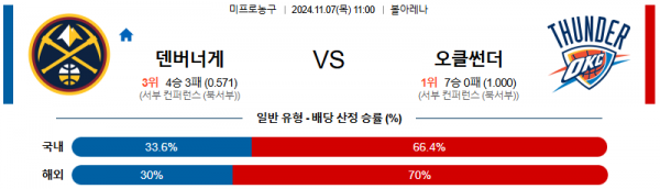 2024 11월 07일 덴버 오클라호마시티 NBA 분석