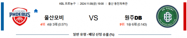 2024 11월 08일 울산모비스 원주DB KBL 분석