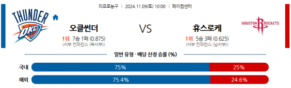 11월 9일 NBA 오클라호마 휴스턴 미국프로농구분석 스포츠분석