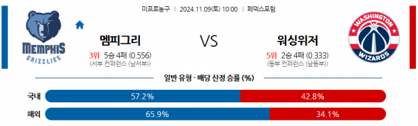 11월 9일 NBA 멤피스 워싱턴 미국프로농구분석 스포츠분석