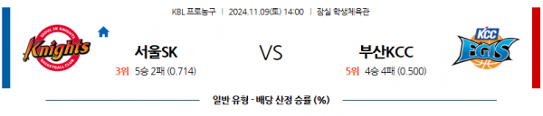 11월 9일 KBL 서울SK 부산KCC 국내외농구분석 스포츠분석