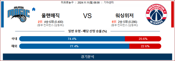 11월 11일 NBA 올랜도 워싱턴 미국프로농구분석 스포츠분석