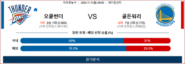 11월 11일 NBA 오클라호마 골든스테이트 미국프로농구분석 스포츠분석