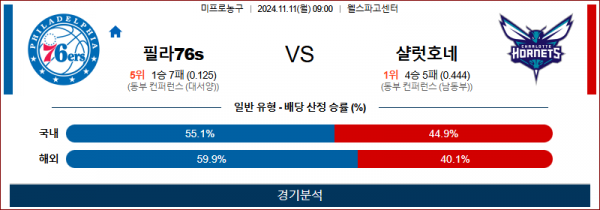 11월 11일 NBA 필라델피아 샬럿 미국프로농구분석 스포츠분석
