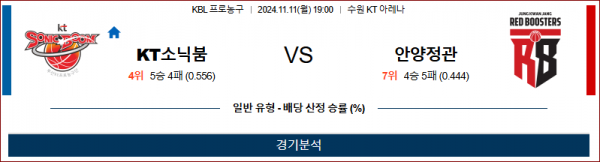 11월 11일 KBL 수원KT 안양정관장 국내외농구분석 스포츠분석