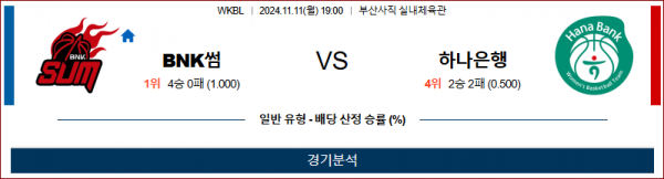 11월 11일 WKBL BNK썸 하나은행 국내외농구분석 스포츠분석