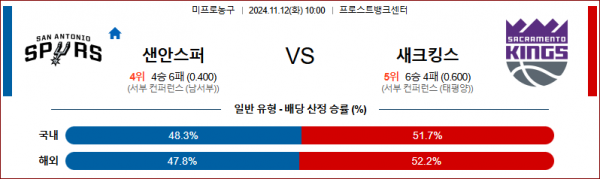 11월 12일 NBA 샌안토니오 새크라멘토 미국프로농구분석 스포츠분석