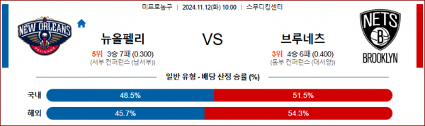 11월 12일 NBA 뉴올리언스 브루클린 미국프로농구분석 스포츠분석