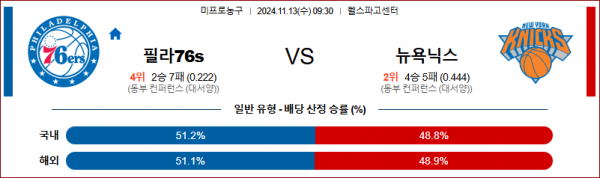 11월 13일 NBA 필라델피아 뉴욕닉스 미국프로농구분석 스포츠분석