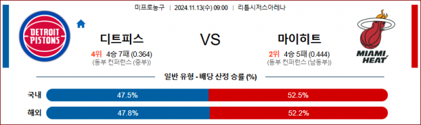 11월 13일 NBA 디트로이트 마이애미 미국프로농구분석 스포츠분석