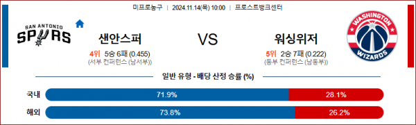 11월 14일 NBA 샌안토니오 워싱턴 미국프로농구분석 스포츠분석
