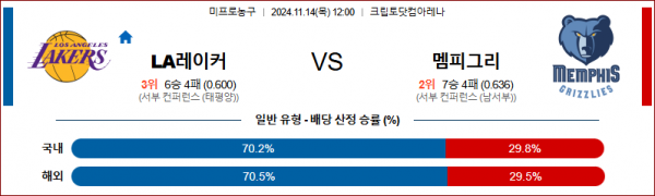 11월 14일 NBA LA레이커스 멤피스 미국프로농구분석 스포츠분석