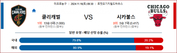 11월 16일 NBA 클리블랜드 시카고 미국프로농구분석 스포츠분석