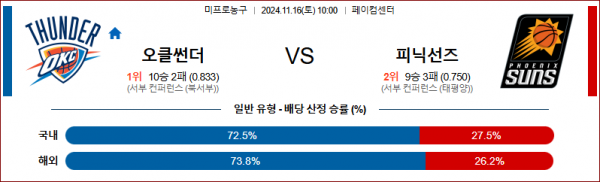11월 16일 NBA 오클라호마 피닉스 미국프로농구분석 스포츠분석
