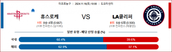 11월 16일 NBA 휴스턴 LA 클리퍼스 미국프로농구분석 스포츠분석