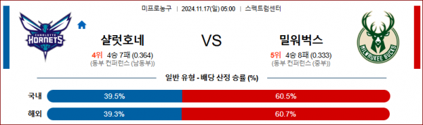 11월 17일 NBA 샬럿 밀워키 미국프로농구분석 스포츠분석