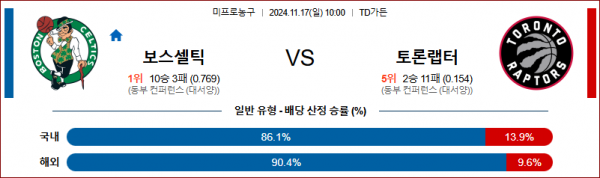 11월 17일 NBA 보스턴 토론토 미국프로농구분석 스포츠분석
