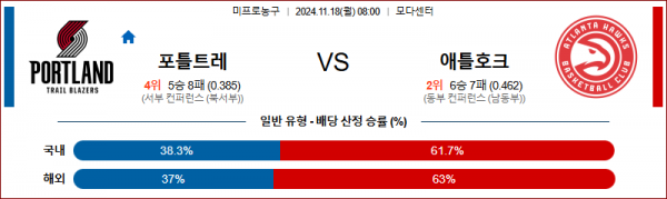 11월 18일 NBA 포틀랜드 애틀란타 미국프로농구분석 스포츠분석