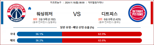 11월 18일 NBA 워싱턴 디트로이트 미국프로농구분석 스포츠분석