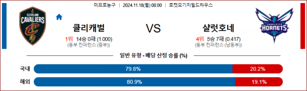 11월 18일 NBA 클리블랜드 샬럿 미국프로농구분석 스포츠분석
