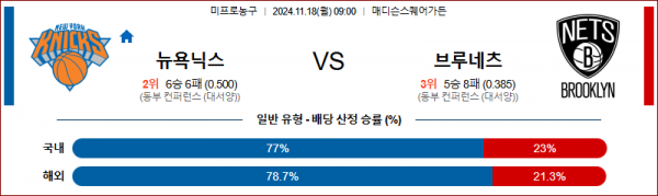 11월 18일 NBA 뉴욕닉스 브루클린 미국프로농구분석 스포츠분석