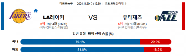 11월 20일 NBA LA레이커스 유타 미국프로농구분석 스포츠분석