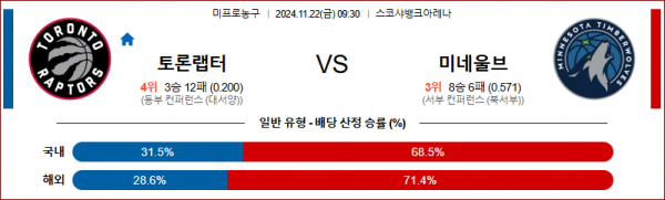 11월 22일 NBA 토론토 미네소타 미국프로농구분석 스포츠분석