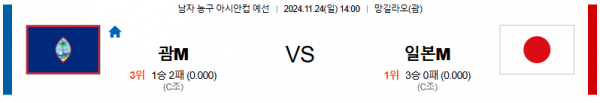 2024 11월 24일 괌 일본 아시아컵 분석