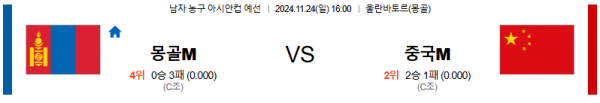 2024 11월 24일 몽골 중국 아시아컵 분석