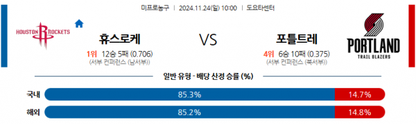 11월 24일 NBA 휴스턴 로켓츠 포틀랜드 트레일블레이저 미국프로농구분석 스포츠분석