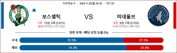 11월 25일 NBA 보스턴 미네소타 미국프로농구분석 스포츠분석