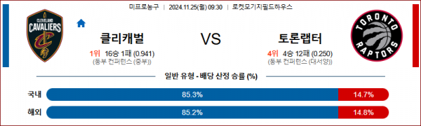 11월 25일 NBA 클리블랜드 토론토 미국프로농구분석 스포츠분석
