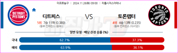 11월 26일 NBA 디트로이트 피스톤스 토론토 랩터스 미국프로농구분석 스포츠분석