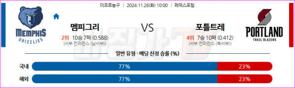 11월 26일 NBA 멤피스 그리즐리즈 포틀랜드 트레일블레이저 미국프로농구분석 스포츠분석