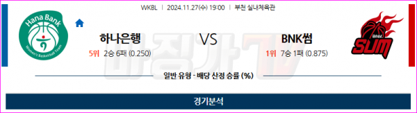 11월 27일 WKBL 하나원큐 BNK썸 국내외농구분석 스포츠분석
